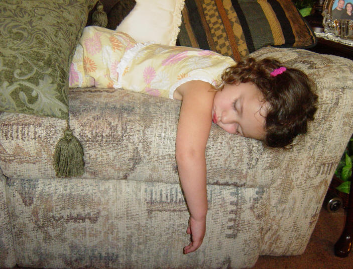 falls asleep on the sofa |