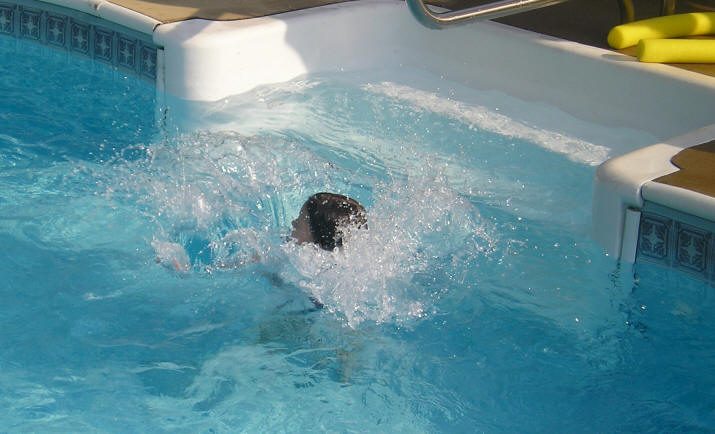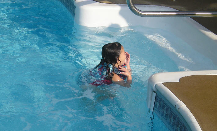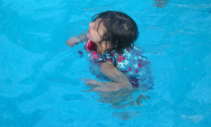 swimming with Nonni and Beth was sun-bathing. |