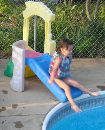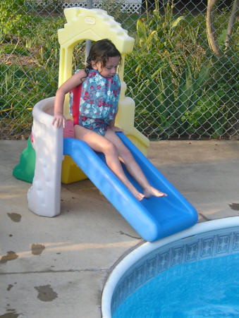 Alexandria goes down the slide into Nonni's arms of safety |