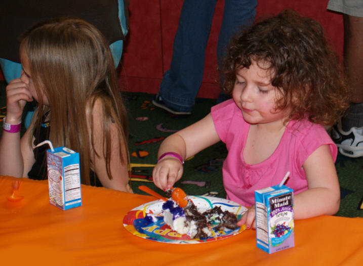 Three-year-old Alexandria enjoys the birthday cake |