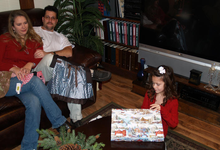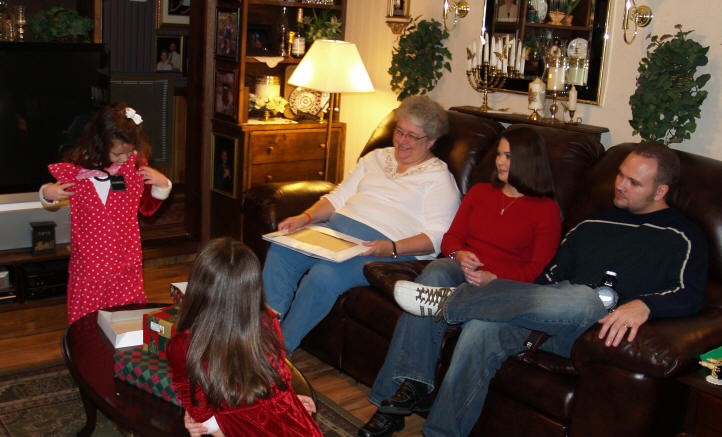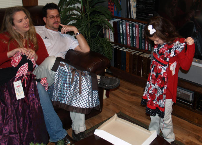 Savanna & Alexandria, wearing their Christmas dresses, ate