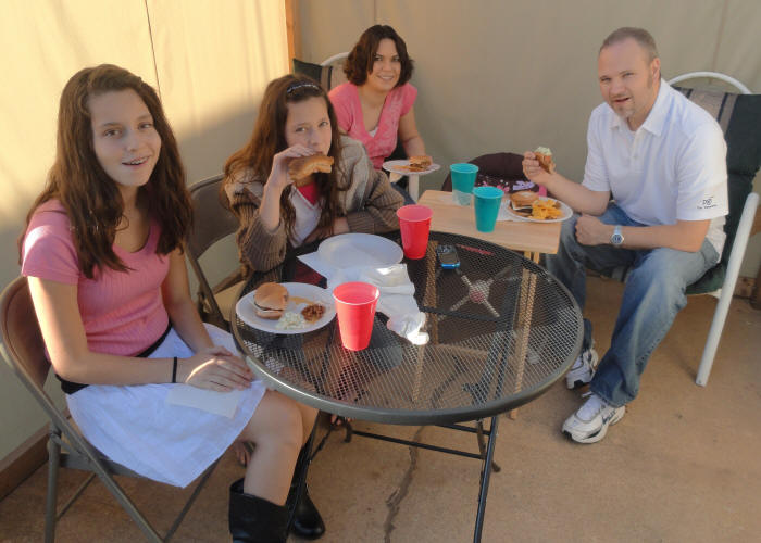 Philip & Leslie, as well as Savanna & Ali, enjoy their hotdogs