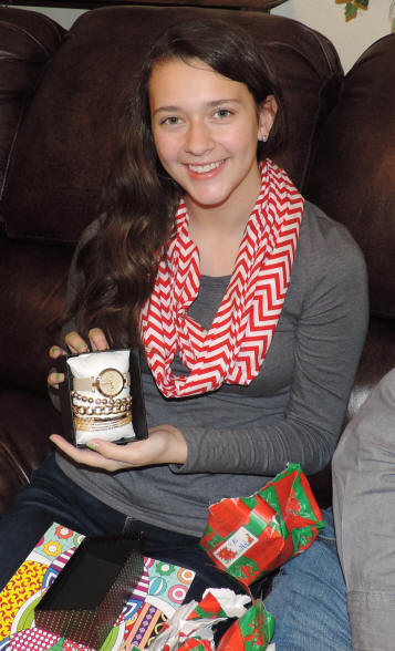 Kayli shows some of the clothes that Poppi and Nonni gave her