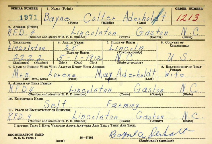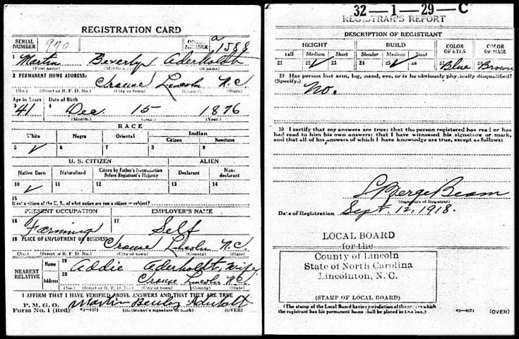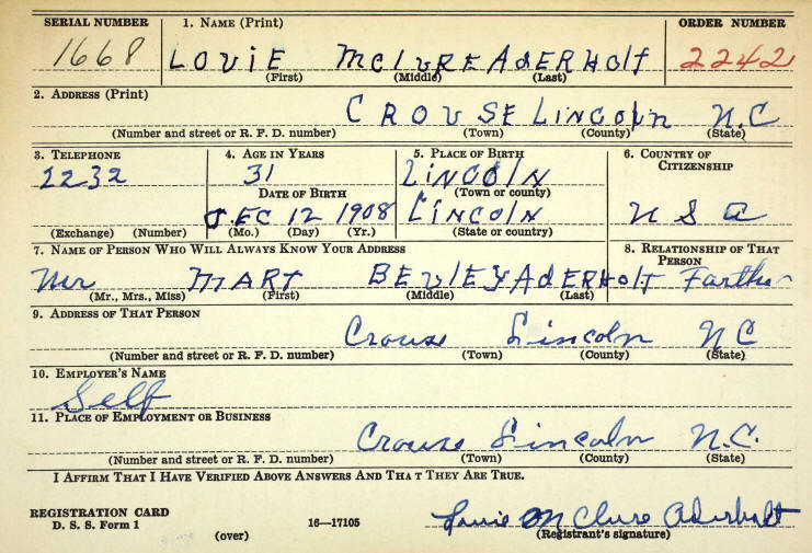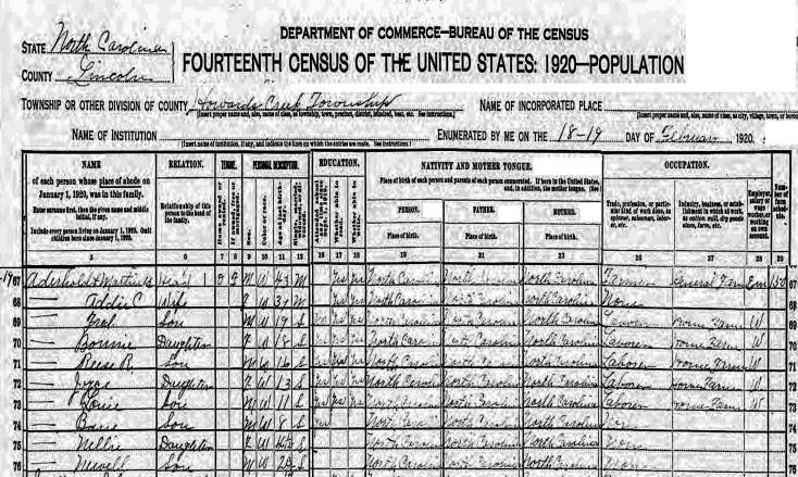 living in Lincolnton, Lincoln County, NC, at the time. |