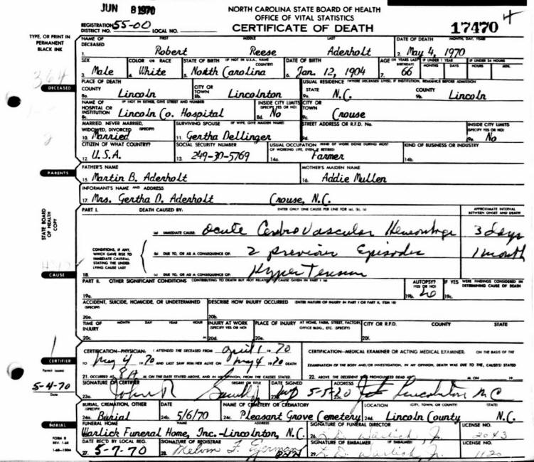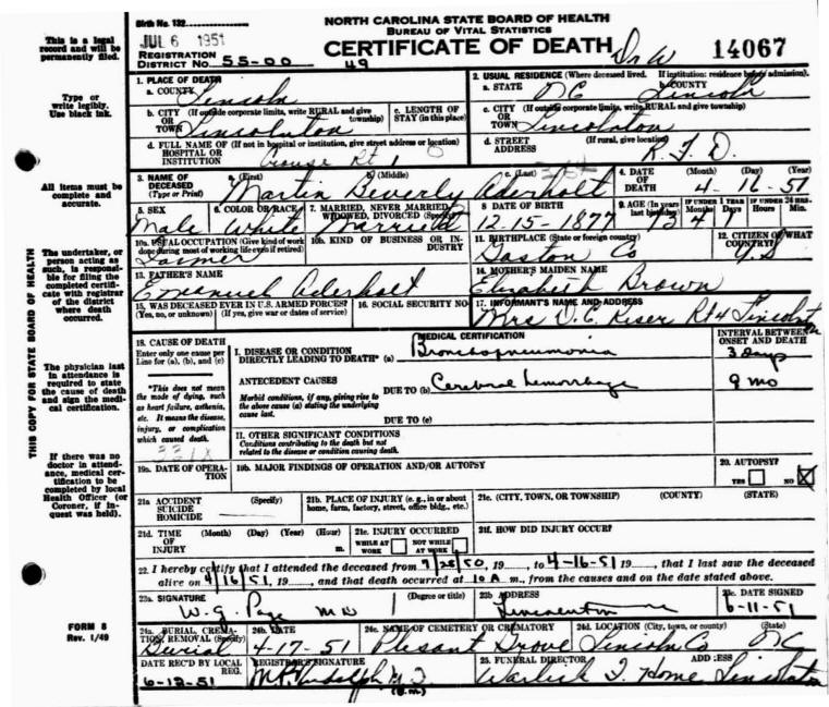 County, North Carolina Died: 16 Apr 1951, Lincolnton, Lincoln