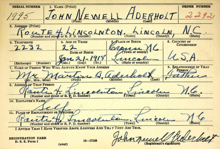 was still living in Lincolnton, Lincoln County, NC, at the time