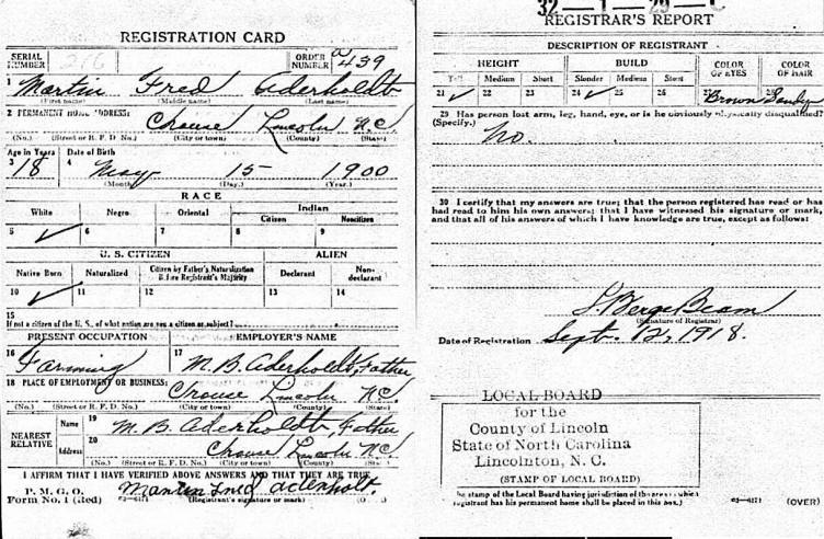 Sep 1918 at the age of 18. Martin Fred's Registration