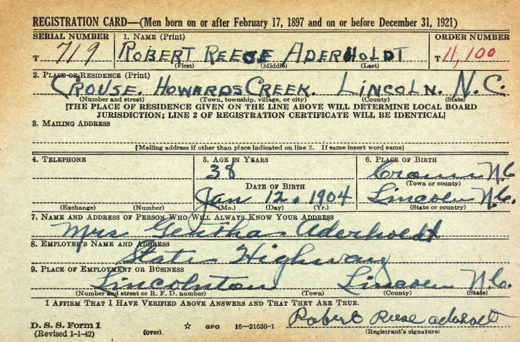 born 12 Jan 1904 in Crouse, Li9ncoln County, North Carolina.
