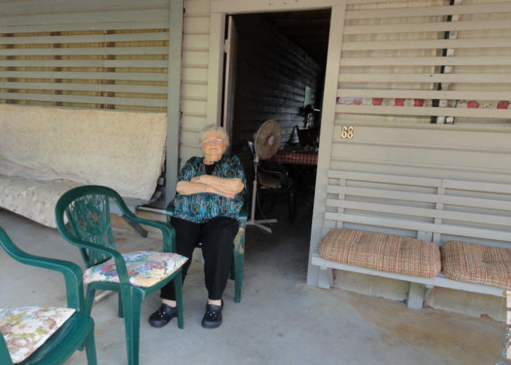 Lois Loftin Mundy walk to the arbor for church services in