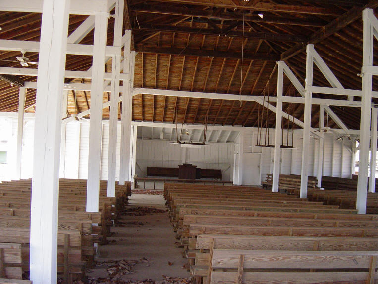 inside view of the Arbor with the old wooden pews - November