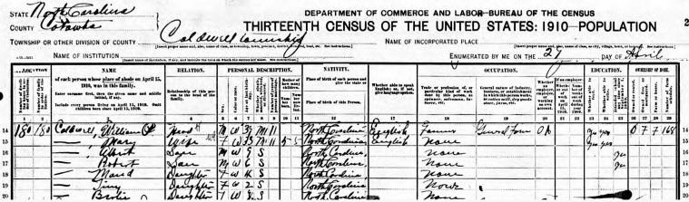 The 1940 Census shows William "Bill" Pinkney Caldwell still