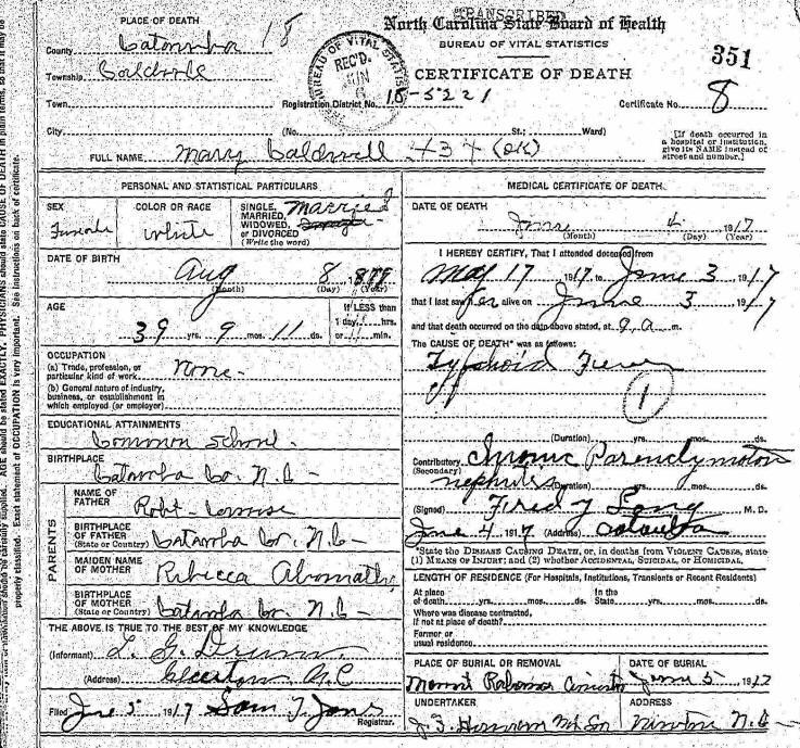 Rt. 1, Maiden, NC. His Death Certificate incorrectly lists