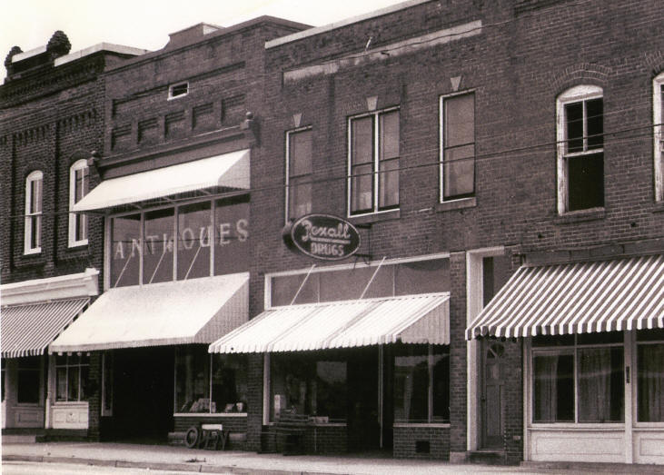 (Left to Right) Coulter's Grocery Store, Antique Store,