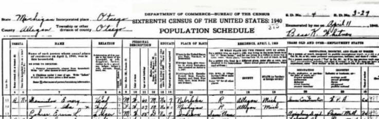 1940 Census for Otsego, Allegan County,
