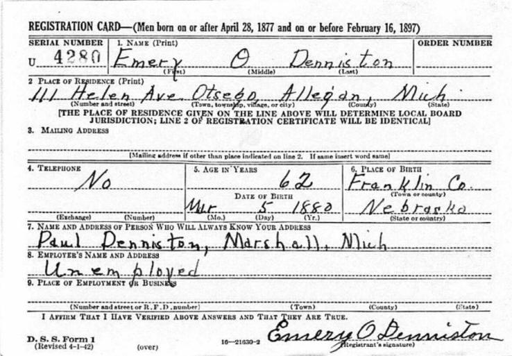The 1940 Census shows Emery & Ida Denniston living in Otsego,