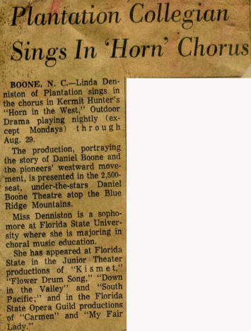 (Florida) sings in the chorus in Kermit Hunter's "Horn