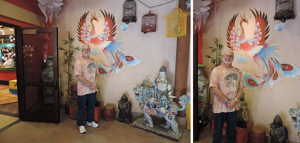 Visitors enter the CHINA PAVILION through a large Chinese gate.