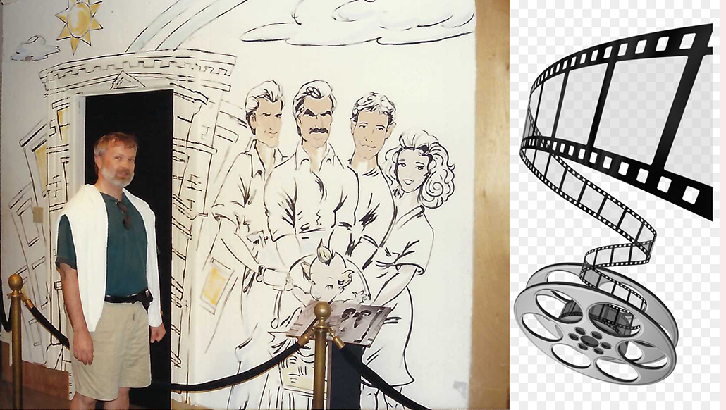 Wall painting of Ted Danson, Tom Selleck, Steve