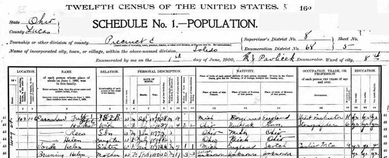 1900 Census for Toledo Ward 8, Lucas, Ohio |