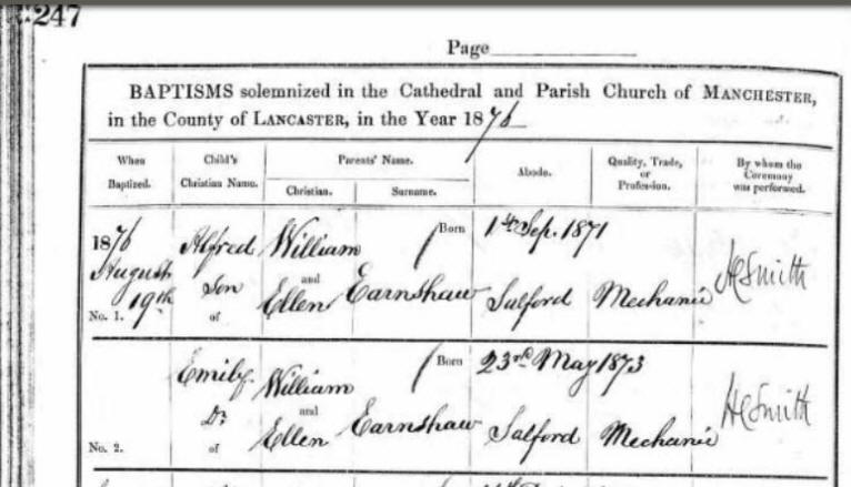 Alfred's sister Emily Earnshaw was born 23rd May 1876 and was