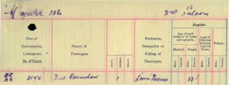 Liverpool, England, on 7 Feb 1894 aboard the ship Majestic
