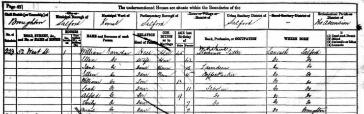 1881 Census for Broughton, Salford, Lancashire, ENGLAND |