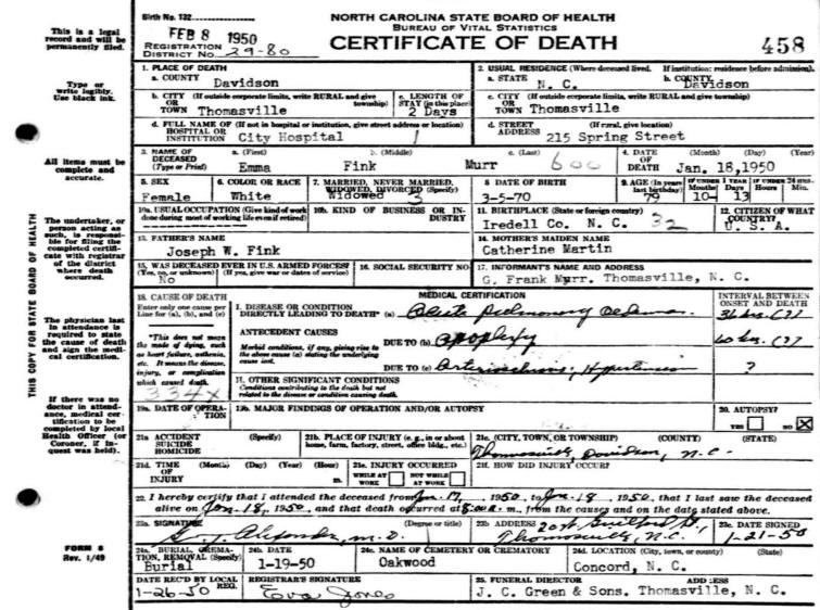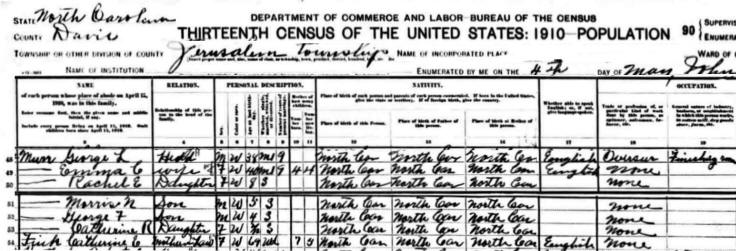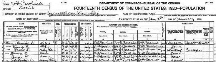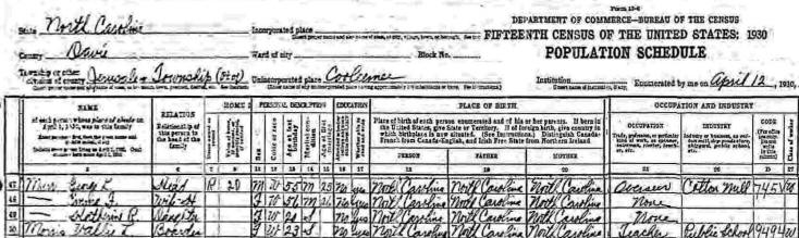 Iredell County, NC, Census, shows Emma (age 2 months) living