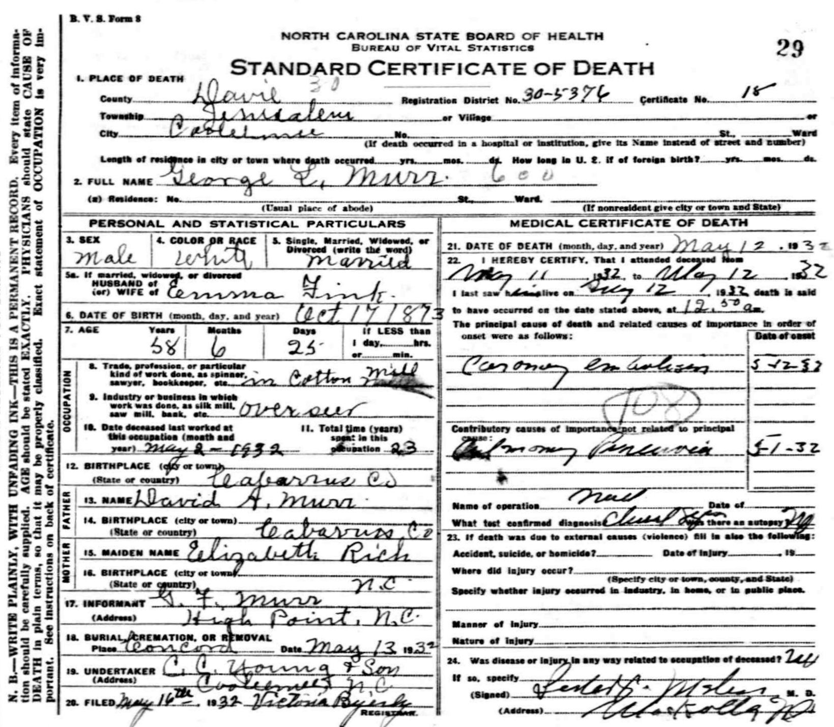 Jerusalem Township, Davie County, NC, at the time of his death. |