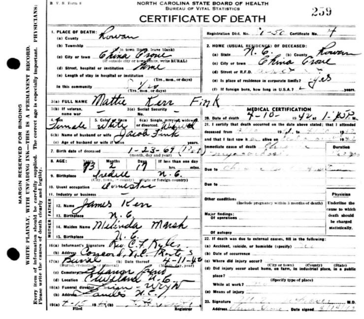 Rowan County, NC, at the time of her death on 10 Apr 1942, at