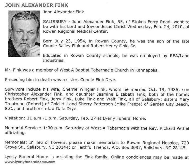 Died: 24 Feb 2010, Rowan Co, NC |