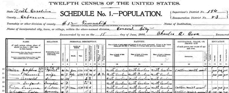 1910 Concord City, Ward 2 Cabarrus County Census |
