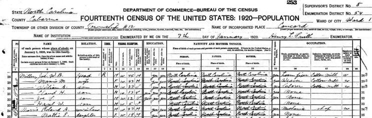 The 1920 Census shows Joe and Mamie still living in Concord,