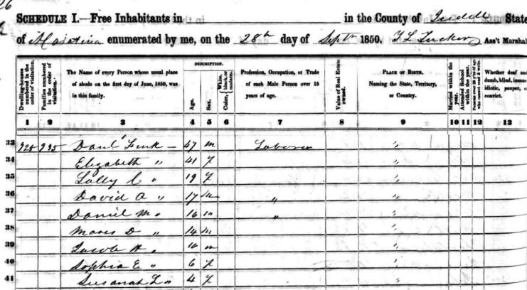 | Both the 1850 & 1860 Census lists one son as Moses D.