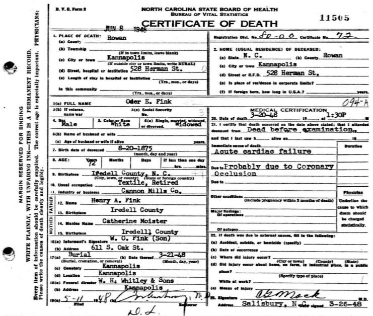 informant as W. O. (William Oscar) Fink. Oder's mother's