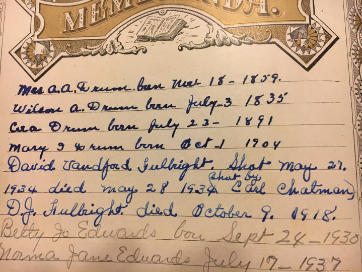was born 30 Oct 1897 to David J. Fulbright and Sarah Fulp.