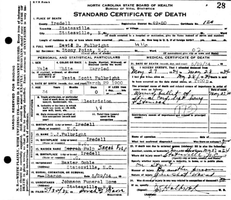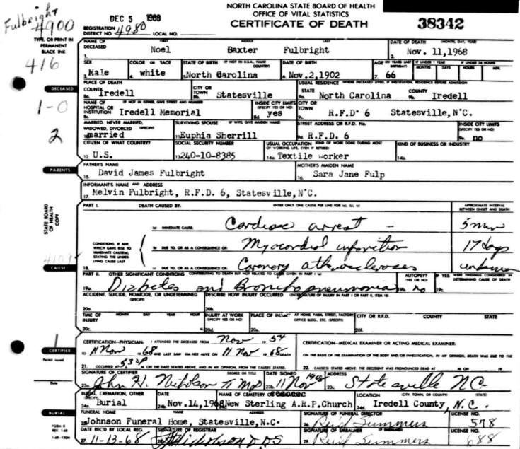 Noel Baxter Fulbright died 11 Nov 1968 at the