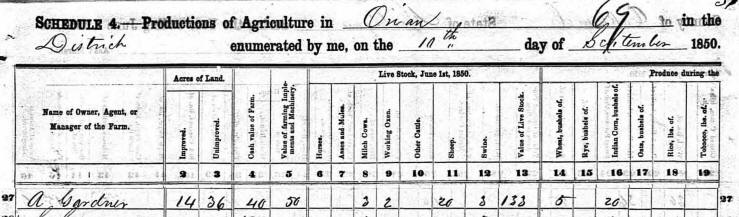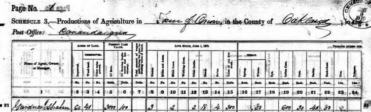 In 1870 Abraham's livestock includes 3 horses, 2 milk cows, 2