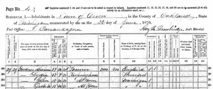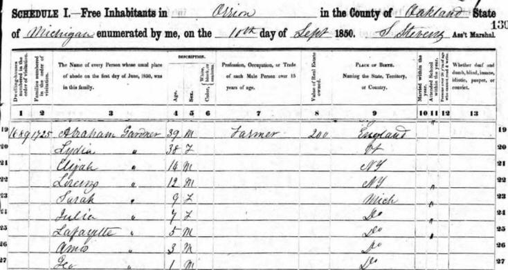 Orion, Oakland County, Michigan. Abraham is 39 and Lydia