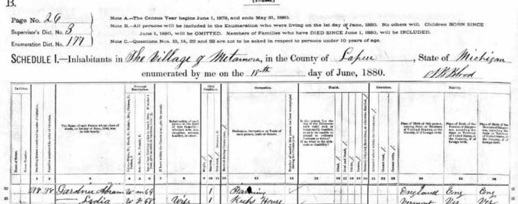 By 1880 Abraham and Lydia have moved to Lapeer County, Michigan.