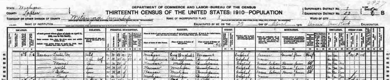 The 1900 Census shows Lester and Anna Gardner living in Elba,