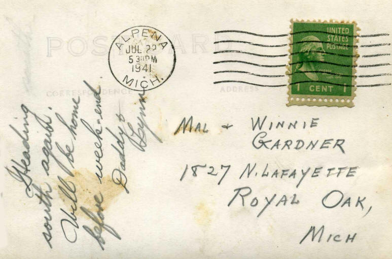 Postcard from Joseph & Lynn to Mal & Winnie in July 1941 in