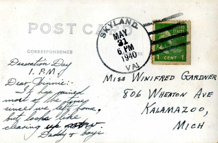 May 31, 1940, Decoration Day, 1 P.M., (Postmarked In