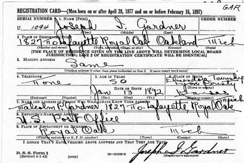 Oldest son Malcolm Gardner is listed as his next-of-kin. |