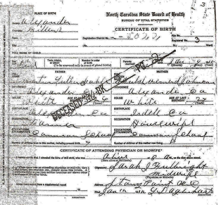 Alexander County shows "Baby Girl's" birth as 01/09/1914,