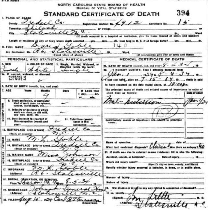 Doris died on 04 Aug 1934 at 10:00 a.m. She was 9 months