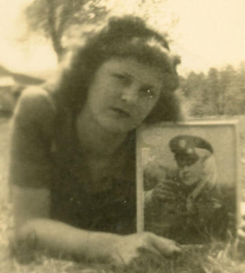 Gevia holding a photo of Martin Gray in his Army uniform |