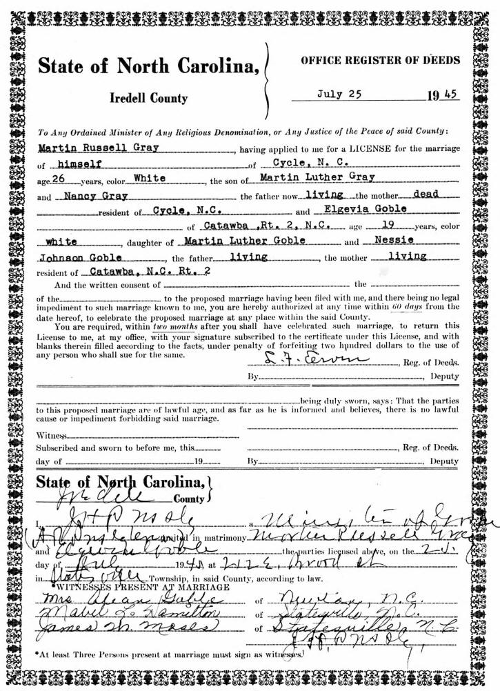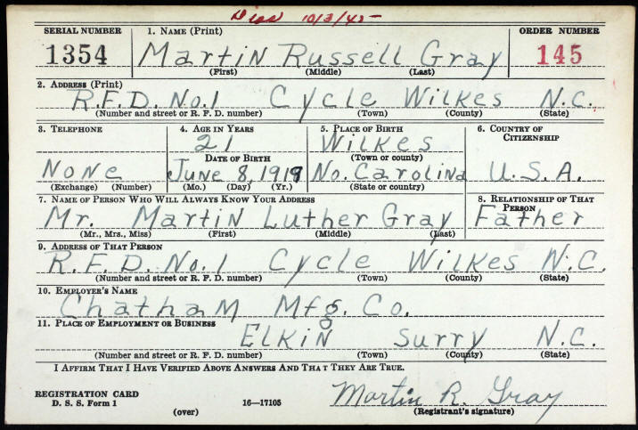 Martin Russel Gray was born 08 Jun 1919 in Cycle, Wilkes