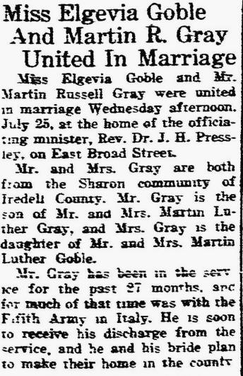 Elgevia met Martin Russell Gray when her brother, Harlee,