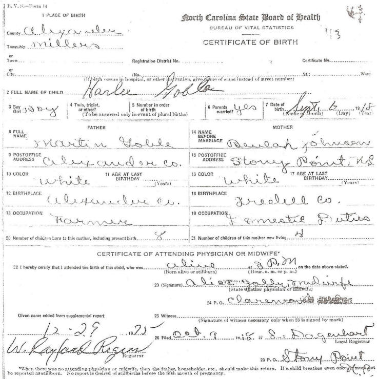 Born: 06 Sep 1918, Alexander County, NC Died: