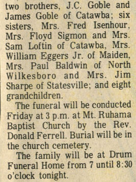 They are buried at Mt. Ruhama Baptist Church in Catawba County. |